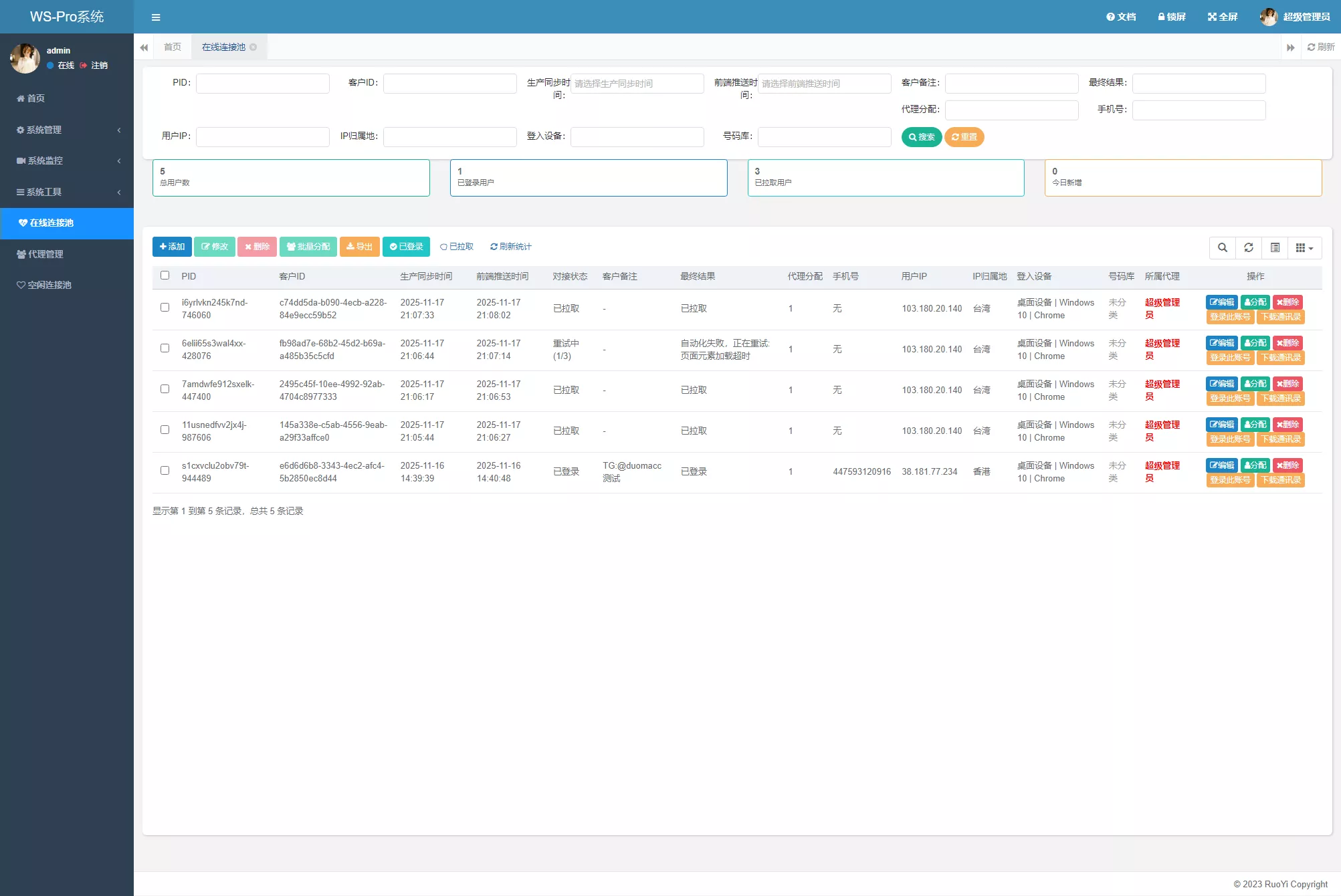 7.后台可指定?账号给代理,代理仅可看见自己的?账号,代理有自己的专属链接。