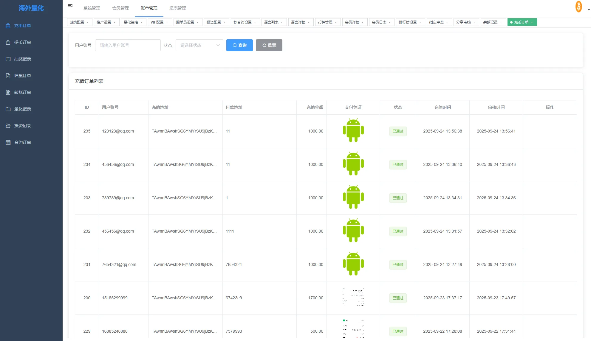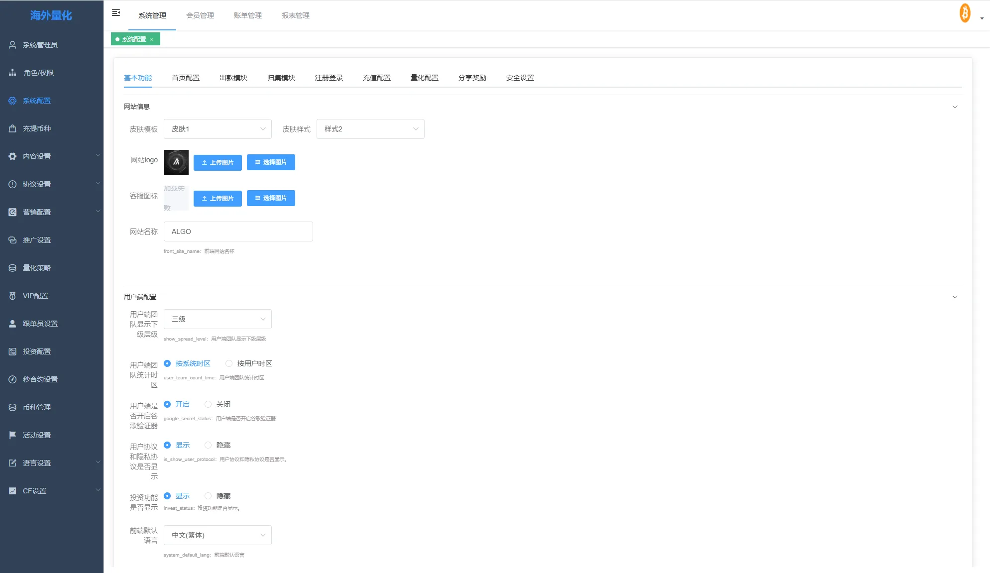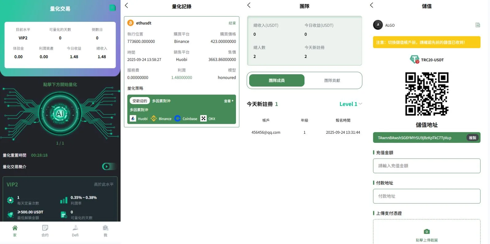 系统功能:秒合约交易,跟单交易,量化交易,Defi投资,三级分销等功能