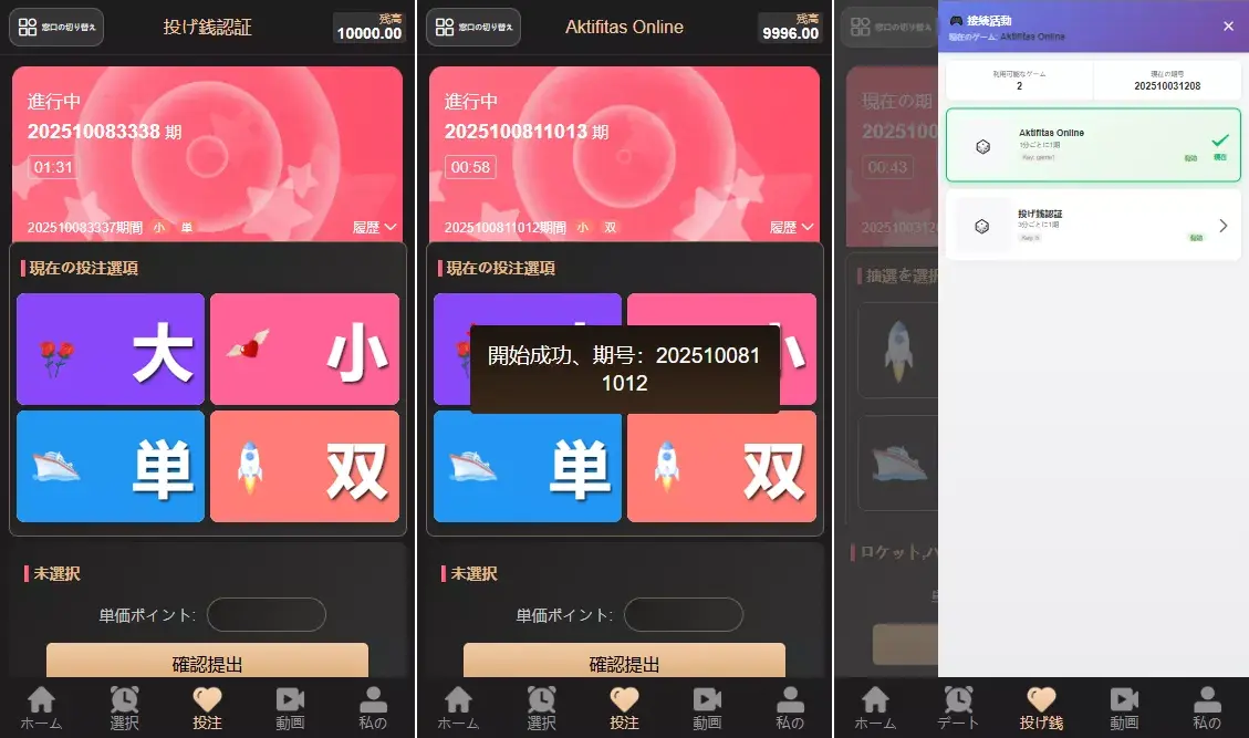 13.二开下单页面显示大小单双,历史记录和开奖显示,和下单显示具体看图
