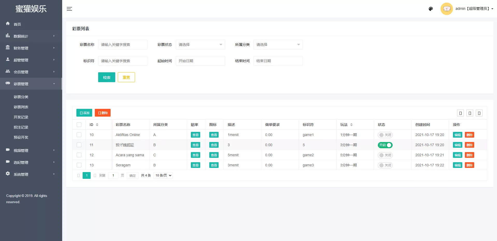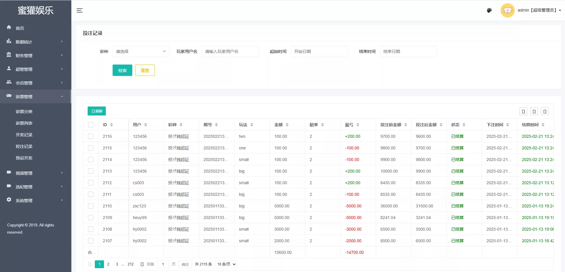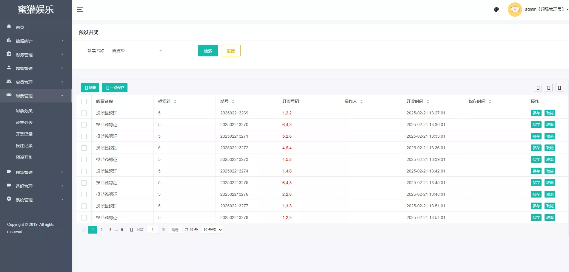 任务彩种都是系统彩,后台可预设控制